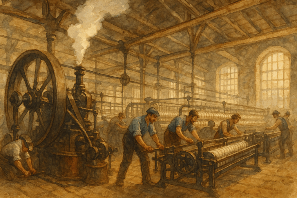 初期の機械制工場は、主に繊維工業分野で導入が進みました。アルザス地方のミュルーズやコルマールでは、1820年代から水力を利用した紡績工場が建設され、従来の家内制手工業に代わって大規模な機械生産が開始されました。これらの工場では、一つの建物内に数百人の労働者が集まり、統一的な作業リズムで生産活動を行う新しい労働形態が確立されたのです。
