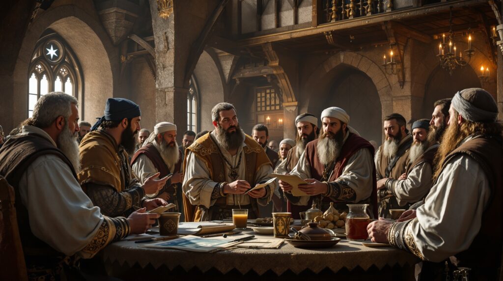 商人ギルドは11世紀頃から西ヨーロッパの都市において、遠隔地貿易に従事する大商人たちによって結成された相互扶助組織です。当時の商業活動は海難事故、盗賊による襲撃、取引詐欺など様々な危険に満ちており、個人の力だけでは事業を継続することが困難でした。