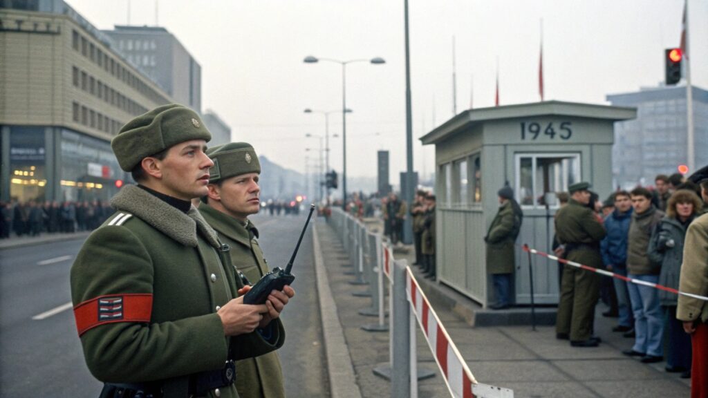 午後10時30分頃、ボルンホルマー通りの検問所責任者であったハラルト・イエーガー中佐は、極めて困難な決断を迫られていました。数万人の群衆が検問所に押し寄せる中、上級司令部からの明確な指示がないまま、現場の判断で対応せざるを得ない状況となっていました。