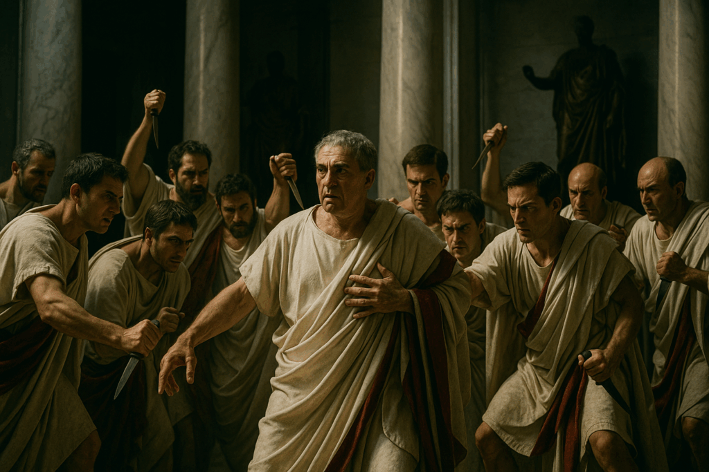 紀元前44年3月15日のユリウス・カエサル暗殺事件は、古代ローマ史における最も劇的な政治事件の一つであり、共和政の理念と個人独裁の対立を象徴する出来事でした。この暗殺には約40名の元老院議員が関与しており、彼らは共和政の復活と元老院の権威回復を目指していました。